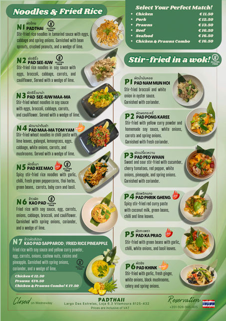 Welcome to Pad Thaii , Where the vibrant flavors of Thai street food meet a lush, green oasis, Nestled in the heart of Vilamoura, Algarve, Portugal. Located next to Santander bank and Amsterdam Cafe, Pad Thaii is a Small business own by Thai Chef and family.
